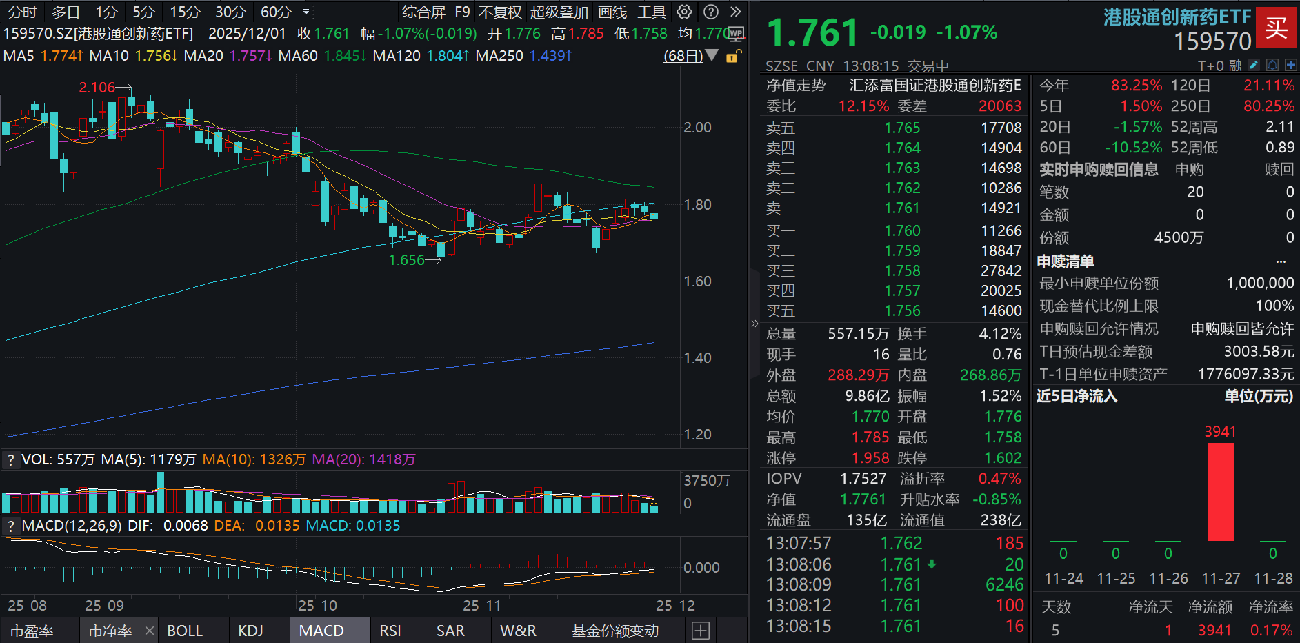 港股通创新药ETF(159570)标的指数100%布局创新药!截至11月,大成分股权重超74%,浓缩港股通创新药精华!