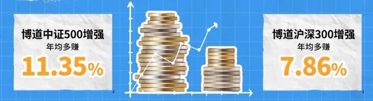 (业绩数据来源于博道基金并经托管人复核,指数数据源于wind,截至2024年12月31日。设立多类别份额的基金业绩只显示A类份额,其他类别份额的历史业绩详见基金定期报告:博道中证500指数增强A净值收益率/业绩比较基准收益率:成立至2019年末29.71%/26.13%(2019年年报)、2020年初至2020年末41.37%/19.94%(2020年年报)、2021年初至2021年末32.16%/14.83%(2021年年报)、2022年初至2022年末-19.75%/-19.30%(2022年年报)、2023年初至2023年末-5.63%/-7.01%(2023年年报)、2024年初至2024年末11.92%/5.40%(2024年年报)。博道沪深300指数增强A净值收益率/业绩比较基准收益率:成立至2019年末15.11%/3.79%(2019年年报)、2020年初至2020年末42.53%/25.86%(2020年年报)、2021年初至2021年末-1.97%/-4.85%(2021年年报)、2022年初至2022年末-20.86%/-20.58%(2022年年报)、2023年初至2023年末-4.27%/-10.79%(2023年年报)、2024年初至2024年末19.09%/14.04%(2024年年报)。风险提示:基金的过往业绩并不预示其未来表现,基金管理人管理的其他基金的业绩并不构成基金业绩表现的保证。我国股市运作时间较短,不能反映证券市场发展的所有阶段。)