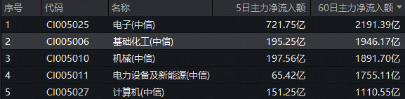 资金面上,主力资金近日频频加码化工板块。数据显示,截至今日收盘,基础化工板块近5个交易日获主力资金净流入195.25亿元,净流入额在30个中信一级行业中位居第4;近60日,基础化工板块累计获主力资金净流入额更是高达1946亿元,净流入额在30个中信一级行业中高居第2。