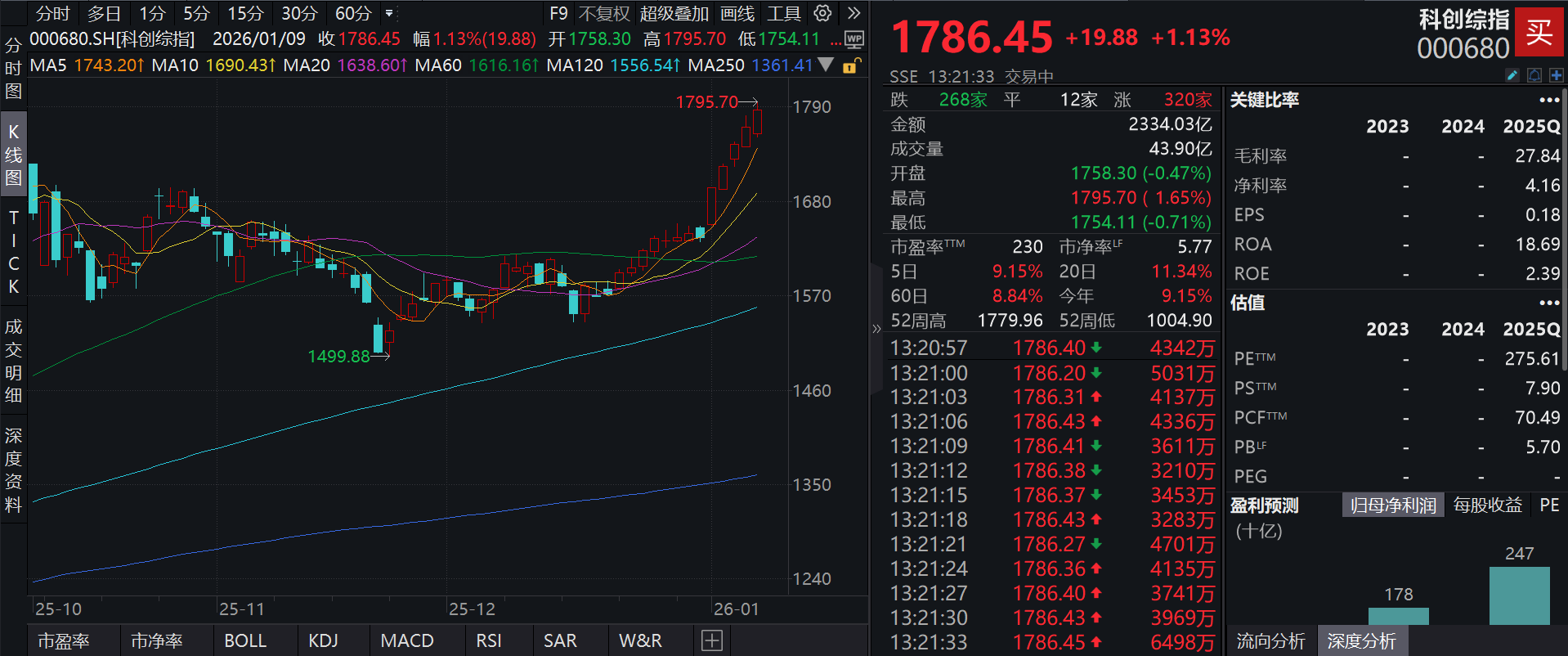 截至2026年1月8日,泰康上证科创板综合指数增强A(023970)较前一交易日上涨1%,单位净值再创成立以来新高。值得一提的是,泰康上证科创板综合指数增强A(023970)跟踪指数——上证科创板综合指数即将迎来发布一周年!2025年1月9日,上交所和中指公司联合宣布,将于2025年1月20日正式发布上证科创板综合指数,表征科创板市场的整体表现。截至2026年1月9日 13:21,科创综指(000680)强势上涨1.13%,成分股震有科技(688418)上涨12.86%,星环科技(688031)上涨10.61%,亚信安全(688225)上涨10.44%,理工导航(688282),天承科技(688603)等个股跟涨。