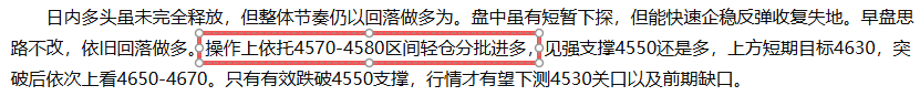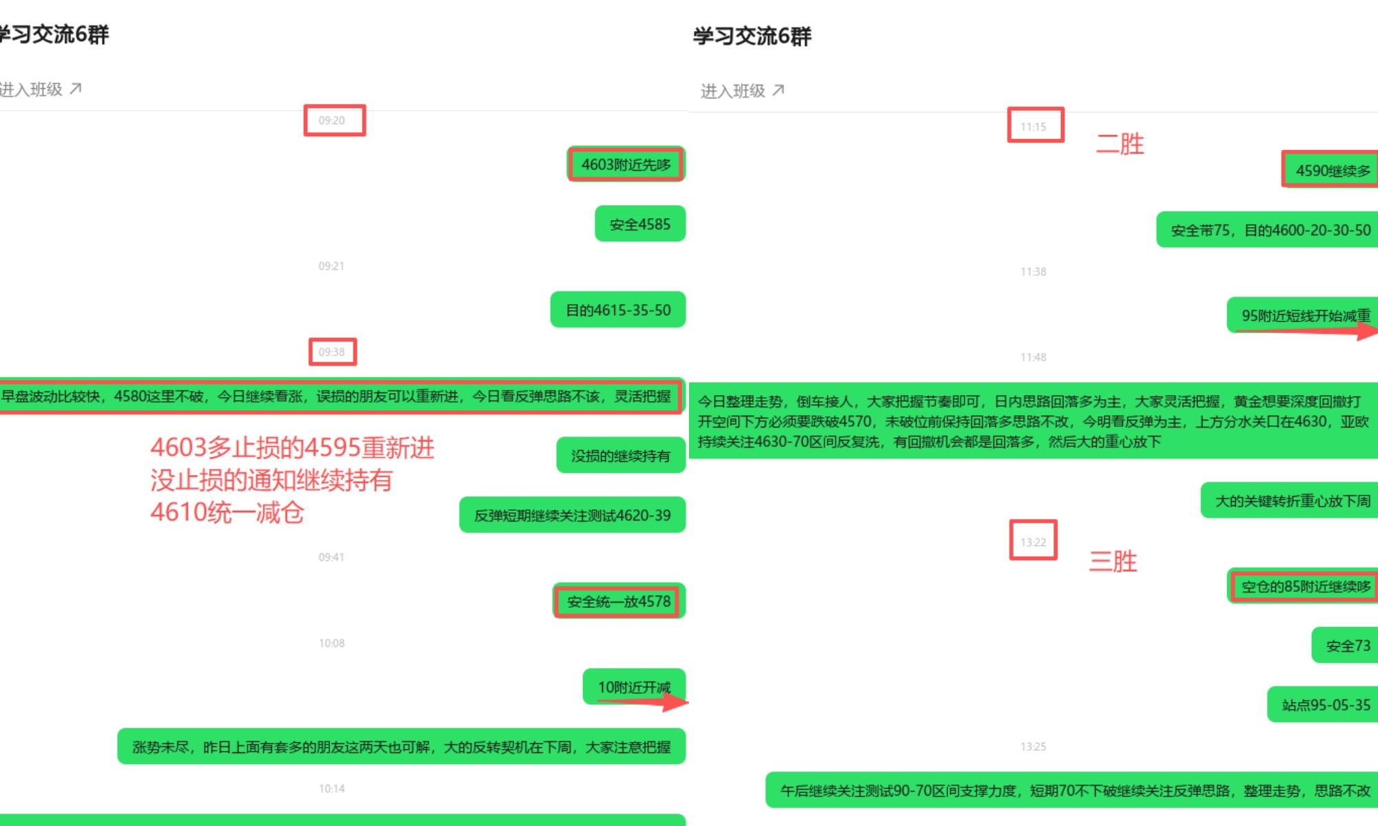 昨日尾盘前公开4580支撑布局多,走势完美符合预期。下探4582后企稳反弹,反弹最高触及4624,实战同步跟进多完美收割,拿下四连胜收官!