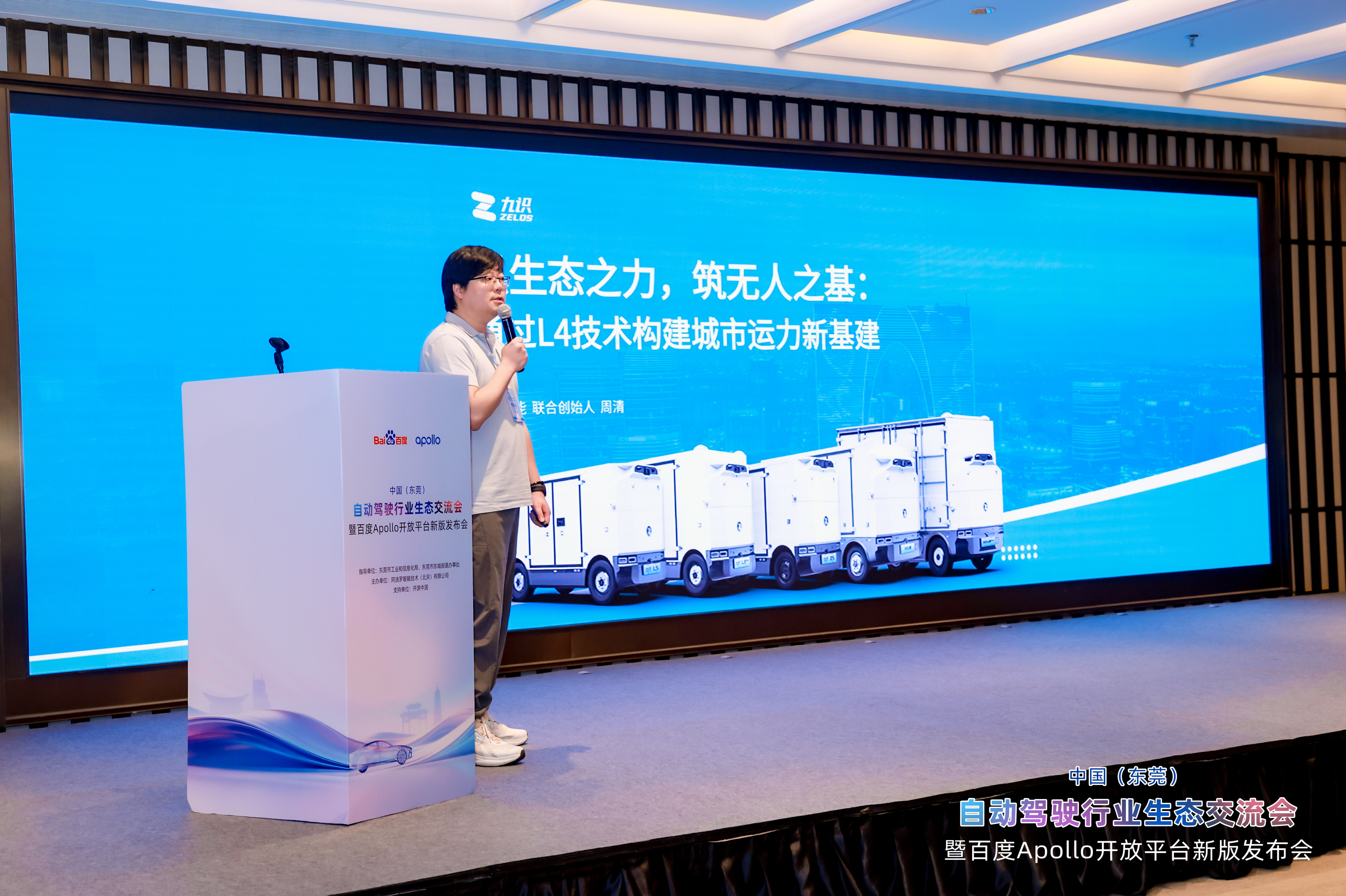 1月30日,百度Apollo开放平台新版发布会于广东东莞正式举办。作为全球活跃度最高的自动驾驶开源社区,Apollo 11.0从软件能力、硬件生态、工程落地与人才培养四大维度实现全面升级,也标志着其发展模式从“技术开源”向“场景驱动+生态共建”完成深度演进。九识智能作为本次大会唯一受邀的L4级无人驾驶RoboVan企业,在会上发表了题为《以生态之力,筑无人之基:通过L4技术构建城市运力新基建》的主题演讲。
