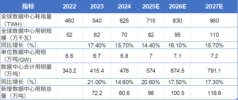 图:全球AI数据中心铜量预测