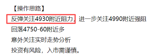 回落4930-20区域择机多,破位依次关注4880、4850支撑多