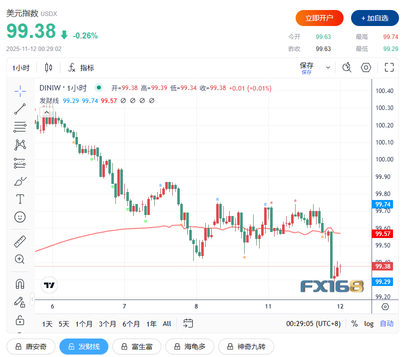 受此影响,美元指数(DXY)一度下跌超0.3%至99.29,创近四周低点;欧元/美元上升超0.4%至1.1605;美元/日元跌至153.66低点。