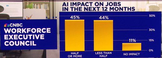 这项面向 CNBC Workforce Executive Council(由美国上市与私企的人力资源负责人组成)的快速调查显示,67% 的受访 HR 高管表示 AI 已经对其公司内部工作岗位产生影响。#AI热潮:从芯片到资本的竞赛#