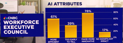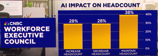 一位来自美国的大型企业首席人力资源官在接受 CNBC 问卷调查时这样总结当前变化:“AI 正在通过重新分配岗位中的任务来重塑工作的未来。”