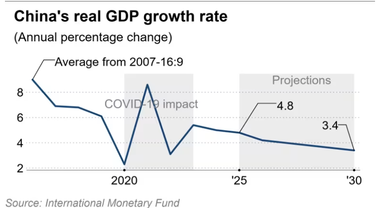 投资者和分析人士预计,中国将设定更低的国内生产总值增长目标,区间大致在4%至5%之间,低于今年提出的“5%左右”。考虑到关税、消费疲软和通缩等多重压力,这一目标仍显雄心勃勃。