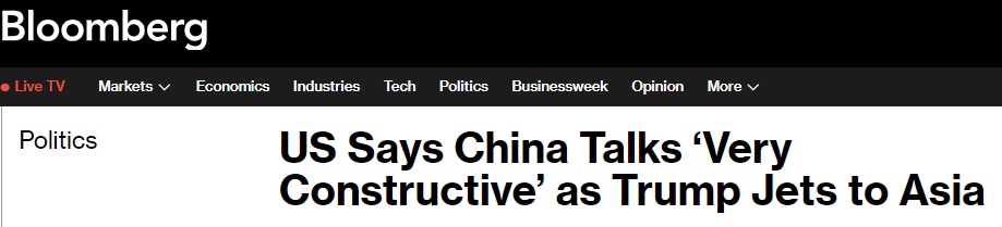 #中美关系#FX168财经报社(亚太)讯 美国彭博社周日(10月26日)报道称,美国表示,在马来西亚贸易谈判首日结束后,与中国进行了“非常建设性”的会谈。与此同时,美国总统特朗普(Donald Trump)开启了对该地区访问,并计划于下周与中国领导人举行会晤。