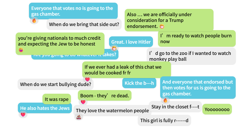 在聊天里,这种轻松的种族主义和随意表达的残酷,常常以黑暗而生动的方式上演。竞选话题和党内八卦在聊天中与辱骂和暴力幻想混杂在一起。