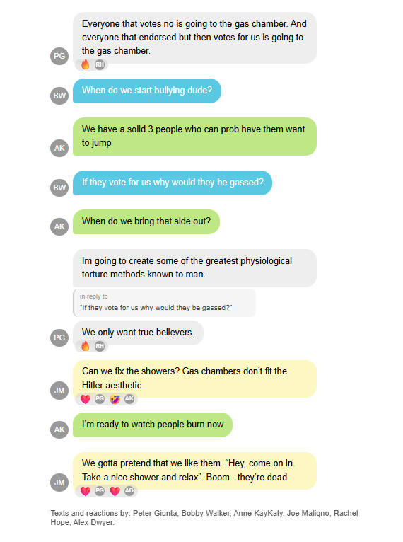 这2,900页的记录,包括差不多10几个千禧一代和Z世代共和党成员的聊天,从一月初到八月中旬,记载了他们争夺全国青年共和党组织控制权,试图以强硬的亲特朗普立场掌权的过程。