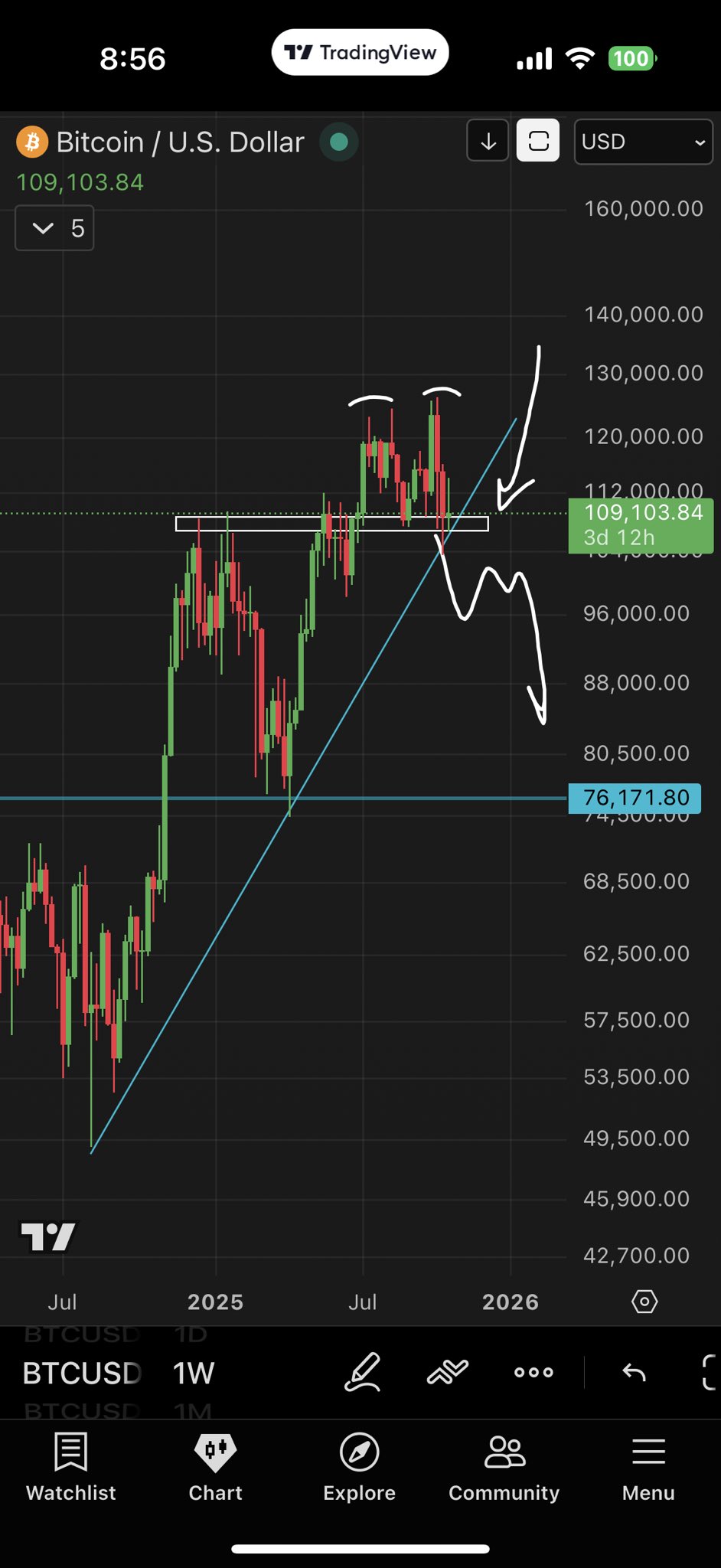 "目前我们已经守住了支撑,但我想强调的是,这不仅仅是一个水平支撑位,它实际上是近一年半以来上升趋势的斜向支撑线,"他在向X平台粉丝解读周线图时表示。