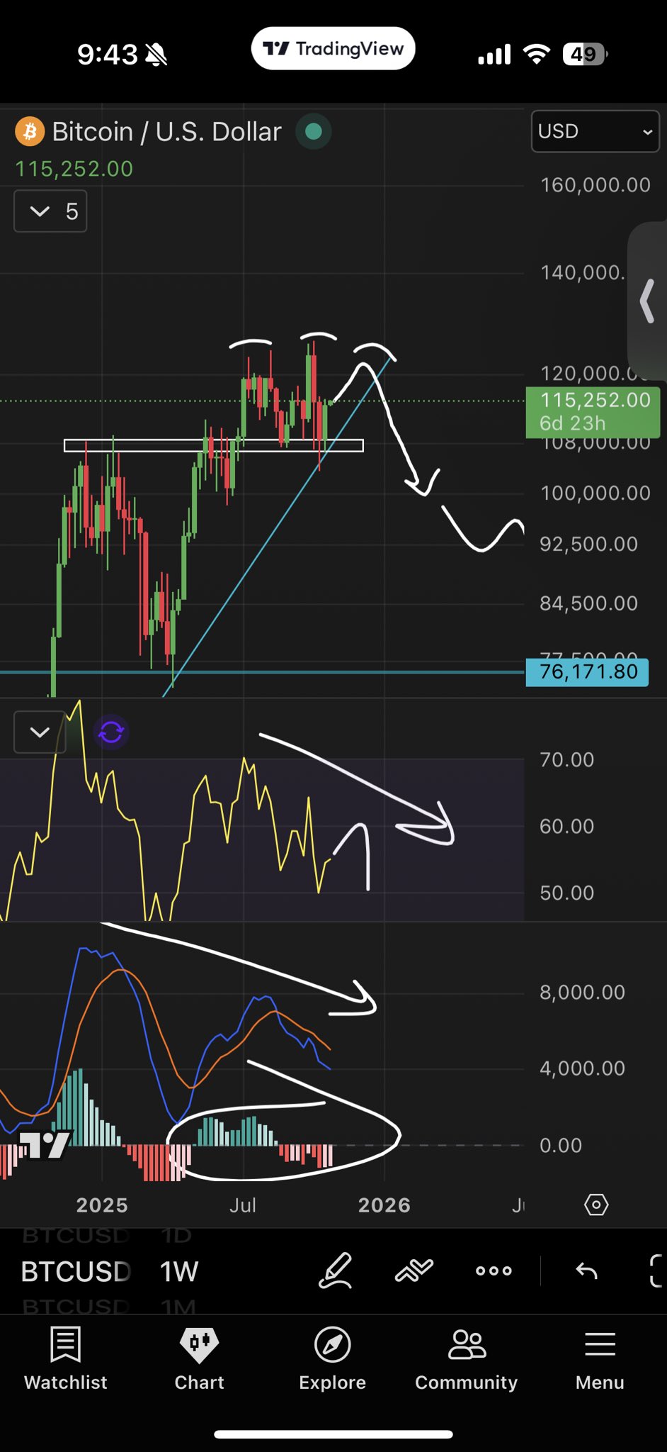 其中,交易员Roman再次强调了高周期弱势、成交量低迷以及相对强弱指标(RSI)上的看跌背离。
