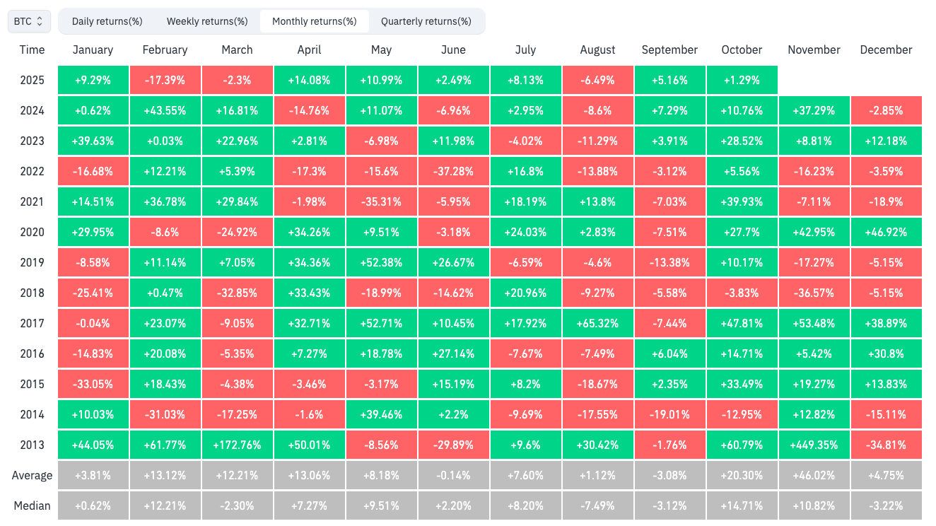 随着价格波动仍然很高,比特币2025年的“Uptober”仍悬而未决。