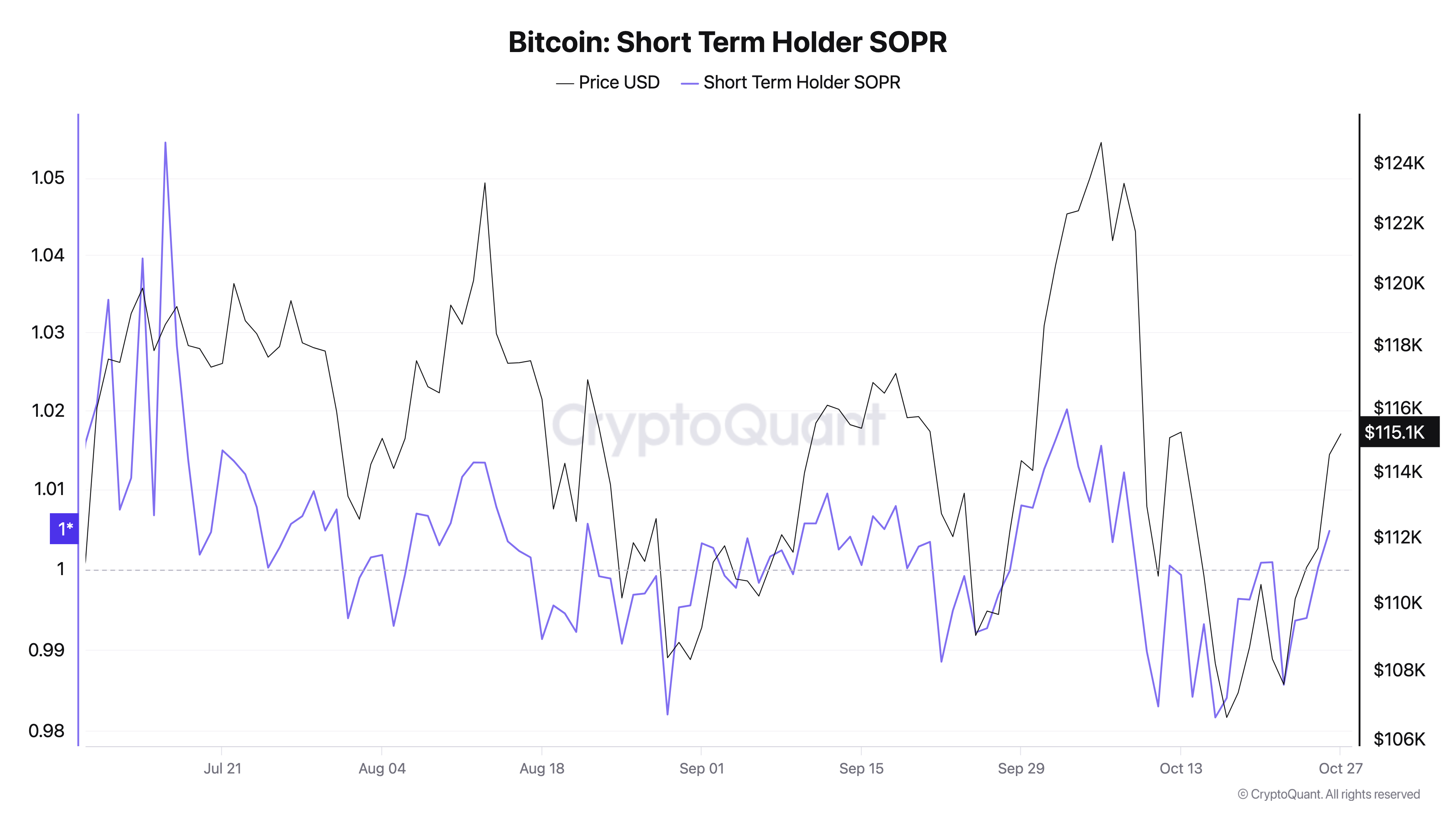 链上分析平台CryptoQuant指出,短期持有者利润率(SOPR)已重新升至1以上,并创下自10月8日以来的新高,
