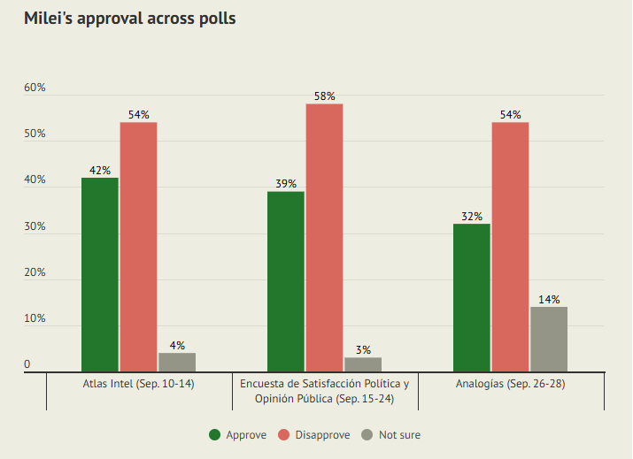 阿根廷民调公司Zuban Cordoba负责人Gustavo Cordoba认为,也许是出于避免再次爆发经济危机,不少民众愿意再给LLA一次机会。“很多人愿意再给政府一次机会……我们拭目以待阿根廷社会还能容忍多久。但此次胜利毋庸置疑,无可争议。”