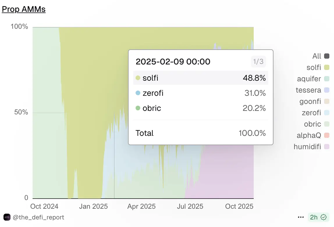 在 2025 年 2 月份,SolFi, ZeroFi 和 Obric 是主要的三个自营 AMM