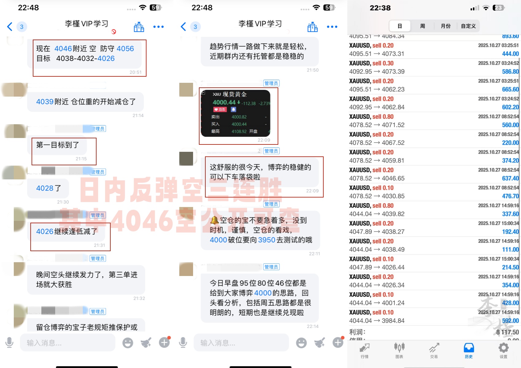 实战日内4006空持有至3947下车离场,美盘3903反手多单也顺利抵达第三目标3930,实现日内多空双收。5000美金翻10倍随便观摩验证!早盘公开的思路中有明确提到4020阻力,不破黄金就要走弱下来。从现在看4020是日内的最高点,其实今日大跌是比较符合我们的预期的,自预测22日转折后,我们一直维持反弹空的思路收获颇丰。