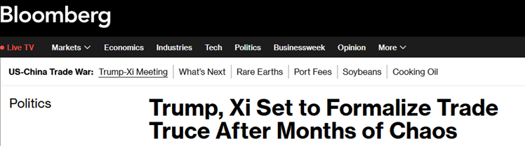 彭博社指出,此刻是一个分水岭——对全球经济、依赖贸易的市场和企业,以及半导体和航运等关键行业而言,这些行业已成为这场更广泛冲突中的筹码。然而,最终结果更像是暂时停止敌对行动,而非达成一项能够改变世界两大经济体有序脱钩轨迹的持久协议。