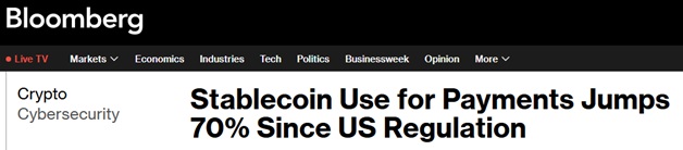 #NFT与加密货币#FX168财经报社(亚太)讯 美国彭博社周日(10月26日)报道称,自今年7月美国首次通过针对稳定币的监管法案以来,消费者和企业使用稳定币(与美元挂钩的数字代币)进行现实世界中的购买与支付的速度正在迅速加快。