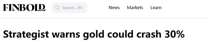 McGlone认为,金价可能即将出现20%至30%的回调,尤其是考虑到历史上金价大幅上涨后的走势。